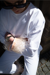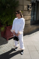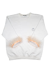 Die Federn sind durch ein Klettband mit dem Sweater und der Jogger verbunden und können zur Reinigung easy entfernt werden.