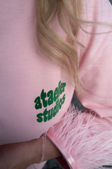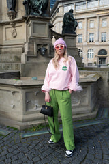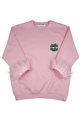 Die Federn sind durch ein Klettband mit dem Sweater verbunden und können zur Reinigung des Sweaters easy entfernt werden.